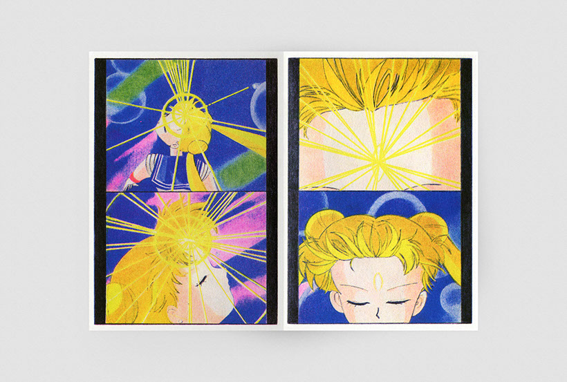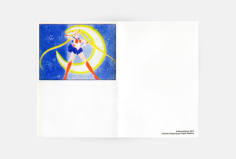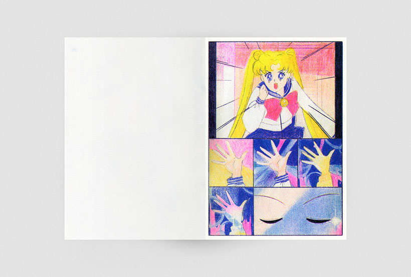 Moon Prism Power! Make Up! is a very personal work, done during Kristina's pregnancy. Watching again and again Sailor Moon's transformation to (re) make a comic book, she reproduces the gestures of her childhood, when she drew with application the character of her favorite manga.